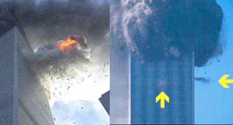 Ähnlich wie das WTC 7 stürzten die beiden Türme mit der Geschwindigkeit des freien Falls in sich zusammen, ohne von der intakten unteren Stahlkonstruktion der Gebäude aufgefangen oder auch nur gebremst zu werden. Das bedeutet, dass die Flugzeuge nicht für den Einsturz der Gebäude verantwortlich sein können. Auf den Videos des Einsturzes kann man erkennen, wie Sprengladungen in den unteren Sektionen gezündet werden. Wie sonst könnte sich der ganze harte Beton pulverisiert haben, und was sonst könnte große Trümmerteile mehr als 150 Meter weit in alle Richtungen schleudern? Nach dem Einsturz fand man orange glühendes, geschmolzenes Metall. Es stammte von der Reaktion des Thermits, das die Stahlkonstruktion zerstörte. Außerdem wurden im Trümmerstaub auch Nanothermit-Rückstände gefunden. Die restlichen Beweise und die Stahlreste wurden sofort nach dem Einsturz abtransportiert und konnten somit offiziell niemals genauer untersucht werden. Es meldeten sich mindesten 150 Personen, die nachweislich Explosionen beim Einsturz der Türme sahen, hörten oder fühlten. Auch die anwesenden Feuerwehrleute bestätigten das.